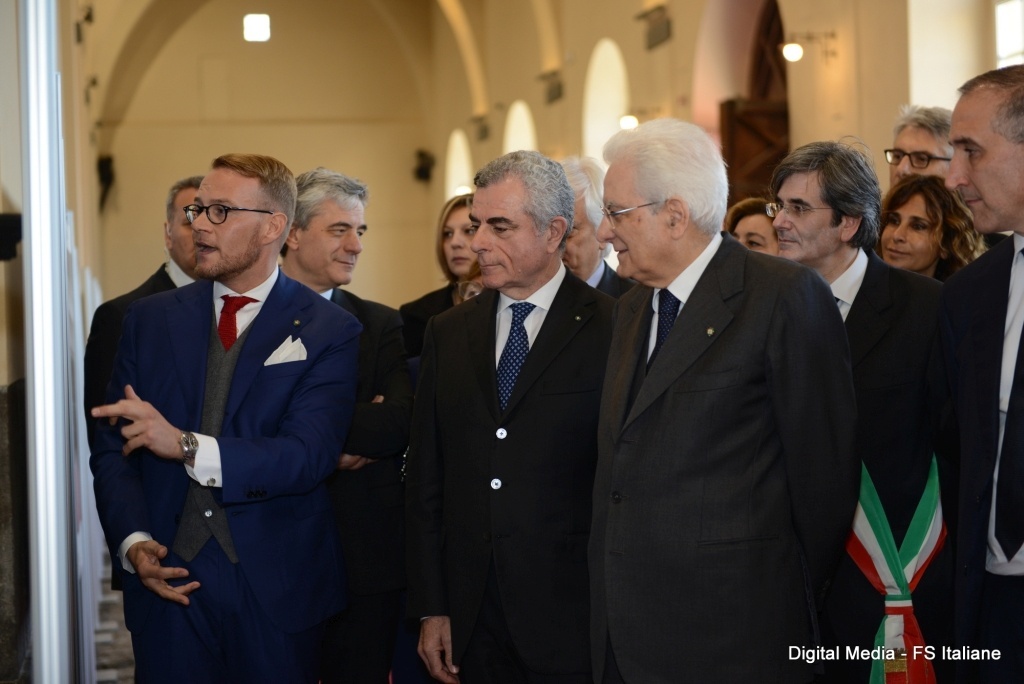 NAPOLI - "Il Museo ferroviario è un posto che lascia senza fiato". Così il presidente della Repubblica Sergio Mattarella ha confessato all'amministratore delegato del Gruppo Ferrovie dello Stato Italiane, Renato Mazzoncini, l'ammirazione per il Museo ferroviario nazionale di Pietrarsa, in occasione della cerimonia per il completamento del restauro architettonico dell'intero complesso museale. Il Capo dello Stato ha raggiunto Pietrarsa in treno, da Roma Termini a Napoli Centrale con un ETR.400 mentre dal capoluogo campano alla stazione di Pietrarsa adiacente al museo ha viaggiato sulla carrozza Salone di Stato, trainata dalla E.428.202.