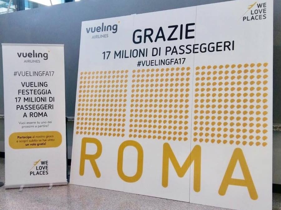 Vueling festeggia l'importante traguardo di 17 milioni di passeggeri trasportati a Roma Fiumicino, secondo hub internazionale della compagnia aerea. Per celebrare il raggiungimento di questo grande obiettivo, Vueling ha organizzato nella giornata di oggi, 4 aprile, una simpatica iniziativa chiamata #Vuelingfa17 all'interno dell'aeroporto di Roma-Fiumicino, coinvolgendo i passeggeri in partenza da Roma in un gioco a premi.