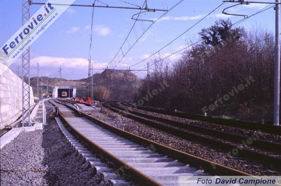 La costruzione del tracciato ad Alta Velocità tra Roma e Napoli comporterà in diversi punti una modifica del tracciato sulla linea "lenta" via Cassino. Una di queste varianti è in corso di realizzazione nei pressi della fermata di Isoletta (FR), dove, al km 113+150, lo scorso 20/09/98 è stato attivato un deviatoio propedeutico all'attivazione della variante, prevista per il 10 gennaio, inizialmente per il solo binario dispari. (Foto David Campione, 15 dicembre 1998)