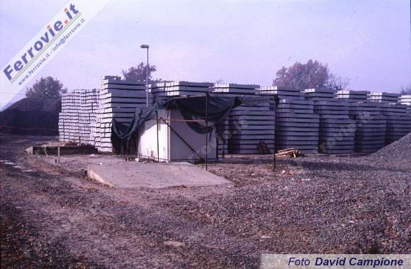 L'area di stoccaggio dei materiali d'armamento di Pignataro Iteramna, nei pressi di Cassino, dove sono già depositate traversine e massicciata. (Foto David Campione, 14 dicembre 1998)