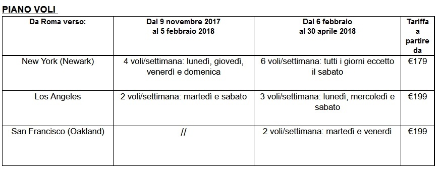 - 3 verso gli Stati Uniti: New York (Newark), Los Angeles e San Francisco (Oakland).