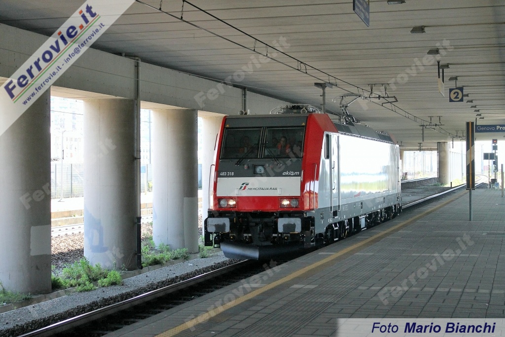 VADO LIGURE (SAVONA) - Mercoledì 31 maggio è stata consegnata da Bombardier la E 483.318 per Mercitalia Rail. Proseguono così secondo i tempi previsti le consegne delle 7 TRAXX DC prodotte per AKIEM e noleggiate dall'azienda del gruppo FS (vedi News ferroviarie del 08/05/2017). Come di consueto, prima della consegna la E 483.318 (quinta unità della fornitura per Mercitalia Rail ad essere consegnata) ha effettuato isolata la corsa prova sul percorso Vado Ligure - Savona - Genova Sestri Aeroporto e viceversa, per poi essere trasferita a Milano Smistamento (deposito di assegnazione), da dove effettuerà servizio come le altre unità del gruppo sulla dorsale tirrenica o nel nord-ovest (vedi News ferroviarie del 09/05/2017).