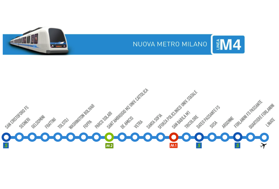 La Giunta comunale di Milano ha approvato la delibera M4 che completa il percorso di approfondimenti finanziari e progettuali in vista della chiusura degli accordi tra banche e soci privati. La nuova metropolitana andrà da Linate a San Cristoforo, passando per San Babila, collegando importanti quartieri popolosi con il centro della città e l'aeroporto.