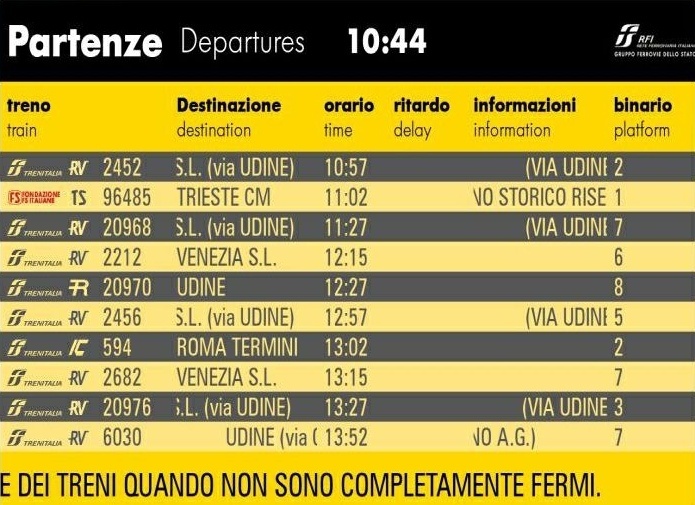 TRIESTE - Importante novità per i treni di Fondazione FS. Arriva la denominazione "Treno Storico" per identificare tutte le corse effettuate con materiale rotabile storico delle Ferrovie dello Stato. La classificazione TS, che ha debuttato il 18 luglio in occasione del treno speciale da Trieste Centrale a Trieste Campo Marzio per la firma del protocollo per i lavori di ristrutturazione del museo ferroviario triestino (vedi Brevi ferroviarie del 18/07/2017), è accompagnata nei display di stazione dal logo "Fondazione FS Italiane" che compare al posto del logo "FS Trenitalia".