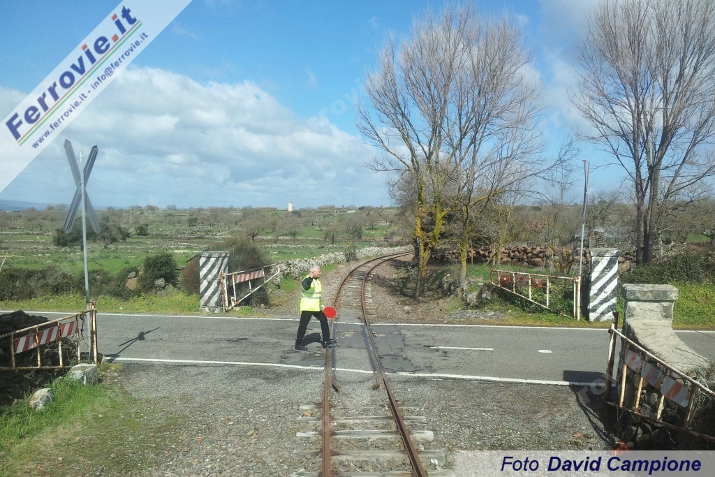 La velocità massima del treno comunque supera di poco i 25 km/h, con i due macchinisti in cabina sempre concentrati sulla linea: sono numerosi i passaggi a livello che incontriamo e mentre quelli sulle Strade Statali 129bis e 295 o sulle altre arterie principali sono presenziati da due casellanti che anticipano il treno con un'auto, i restanti attraversamenti a raso su strade private o tratturi sono protetti solo dalla croce di Sant'Andrea e richiedono lunghi fischi in approccio e transito a passo d'uomo. In più il lungo avancorpo della locomotiva non agevola la visuale dalla cabina e quindi è prassi per i macchinisti viaggiare affacciati ai finestrini laterali.