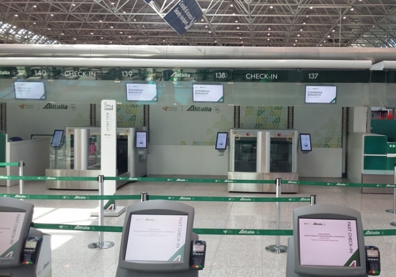 Da oggi il check-in per chi vola con Alitalia da Roma Fiumicino diventa più tecnologico, comodo e veloce. Presso il Terminal 1 dell'aeroporto romano, la Compagnia italiana ha introdotto 40 nuovi chioschi self check-in e, novità assoluta per l'Italia, 10 nuove postazioni "Self Bag Drop Off" per la consegna automatica del bagaglio da stiva. In questo modo, anche i viaggiatori che devono imbarcare il bagaglio possono effettuare il check-in "digitale" (via web, smartphone, tablet o presso i chioschi self check-in) e poi depositare le valigie in pochi secondi, in autonomia e senza dover attendere che si liberi un banco accettazione.