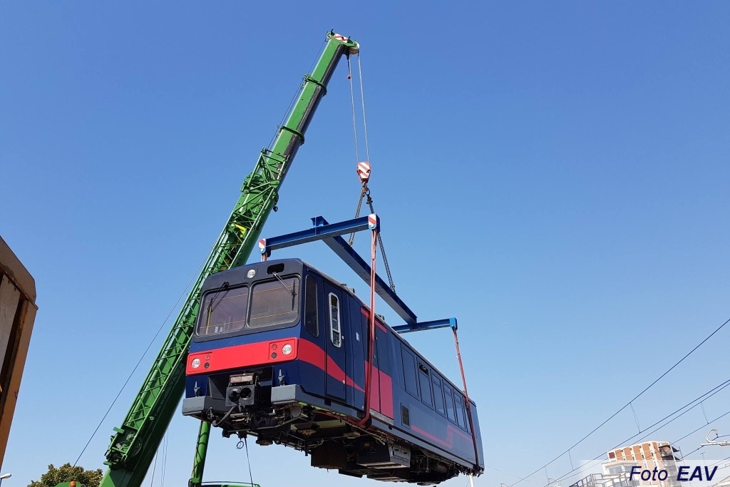 NAPOLI - Dovrebbe concludersi entro il 2018 la consegna dei 37 elettrotreni a tre casse dell'EAV (ferrovia Circumvesuviana), ottenuti dal revamping di altrettanti convogli della serie ETR 001 ÷ 118. Il primo elettrotreno, l'ETR 105 revisionato da TFA - ex Firema, è arrivato nella mattinata del 9 agosto su carello stradale nel deposito EAV di San Giovanni, ed è stato immediatamente trasferito su rotaie.