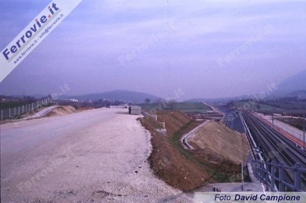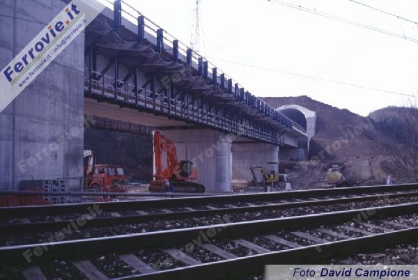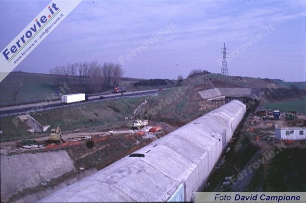 Anche per la galleria artificiale "Colle Cisterna" è stata completata la costruzione; qui è a buon punto anche il ripristino del terreno a copertura dell'arco. In primo piano i binari della linea Roma - Cassino. (Foto David Campione, 2 marzo 1999)