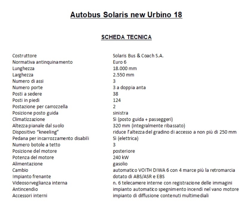 Il costo di questo autobus è di circa 292mila euro ed è stato acquistato da FAL con fondi propri rivenienti da utili di bilancio di FAL. Può trasportare 38 persone sedute e 124 in piedi, dispone di pedana elettrica per incarrozzamento disabili, di 2 postazioni per carrozzella, 6 telecamere di videosorveglianza. Continua così il rinnovo della flotta pugliese degli autobus Fal. I mezzi hanno un'età media di 9 anni. Il parco automobilistico è composto da un totale di 134 mezzi, di cui 56 operanti in Puglia e 78 in Basilicata.