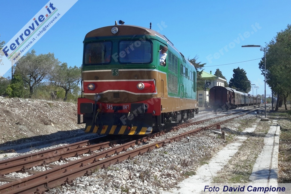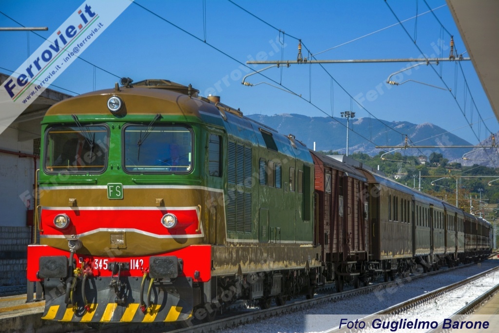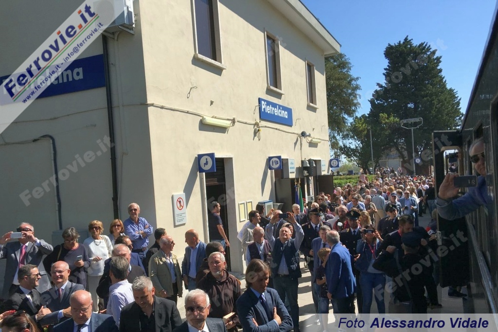 PIETRELCINA (Benevento) - Continuano le riattivazioni per fini turistici di linee ferroviarie in Campania. Dopo il ritorno del treno a Lioni a fine agosto sulla linea Rocchetta Sant'Antonio - Avellino (vedi Treni storici del 28/08/2017), sabato 23 settembre è stata inaugurata la riapertura della tratta Benevento - Pietrelcina (linea per Campobasso, chiusa al traffico da febbraio 2013 tra Benevento e Bosco Redole), per la quale è stato già predisposto da Fondazione FS un calendario di viaggi speciali per l'anno in corso con partenze da Napoli e Salerno. Alle 8.53 del mattino un convoglio storico, con in testa la D.345.1142 ed in coda la E.646.028 e intercalate carrozze Centoporte e Corbellini, ha lasciato Napoli Centrale toccando Aversa, Caserta e Benevento. Qui la locomotiva elettrica è stata sganciata mentre a bordo del treno hanno preso posto autorità, stampa ed ospiti; il viaggio è ripreso alla volta di Pietrelcina, lungo i 13,226 chilometri di linea che la separano dal capoluogo sannitico. Presenti il Presidente della Regione Campania Vincenzo De Luca, il Presidente e il Direttore di Fondazione FS Mauro Moretti e Luigi Cantamessa nonché i Sindaci locali.