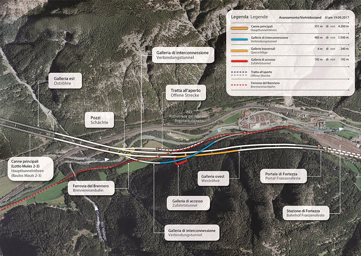 - una breve visita, a bordo di un trenino turistico su gomma, all'area nord del cantiere, dove sono in corso di realizzazione quattro pozzi verticali per il sottoattraversamento del fiume Isarco;