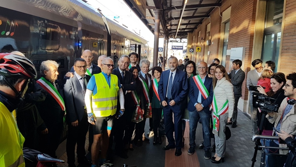 La presentazione dei nuovi treni è stata occasione per una giornata di festa, iniziata alla stazione di Arezzo con il taglio del nastro e la benedizione dei convogli. Il treno è partito alle 11.00 esatte alla volta di Bibbiena, dove si è fermato per permettere la discesa dei cicloturisti della Fiab che proseguiranno il viaggio verso Stia in bicicletta.