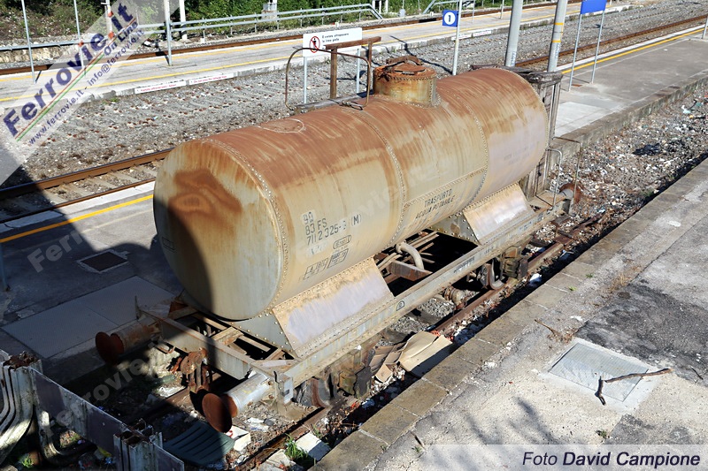 ITRI (Latina) - Forse "dimenticato" durante il taglio dei binari dello scalo merci, forse isolato di proposito su un corto spezzone di rotaie. Sta di fatto che uno storico carro cisterna con garitta serie VZk, da alcuni anni è bloccato su pochi metri di binario a ridosso di un paraurti nella stazione di Itri (linea Roma - Formia - Napoli), in una posizione da cui potrà essere spostato solo con l'ausilio di un carrello stradale o gru, se non peggio con la demolizione in loco.