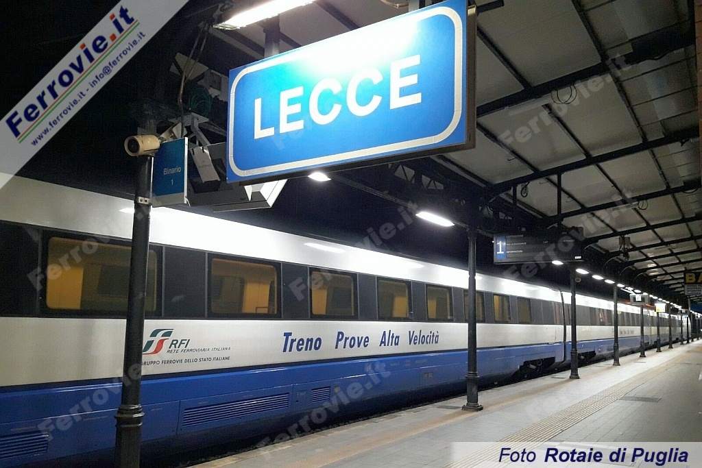 LECCE - Nella notte tra il 22 ed il 23 novembre si sono svolte le prove di omologazione dell'infrastruttura ferroviaria sulla tratta Lecce - Brindisi, alla velocità massima di 200 km/h. I test, che verrano ripetuti negli ultimi giorni di novembre, vengono effettuati con l'ETR.500 Y "Aiace" di RFI e fanno seguito all'attivazione dell'apparato ACCM (avvenuta alle 5.45 del 19 novembre) sulla tratta in questione, contestualmente all'attivazione del blocco automatico a correnti codificate che sostituisce il blocco conta assi e consente appunto velocità più elevate.