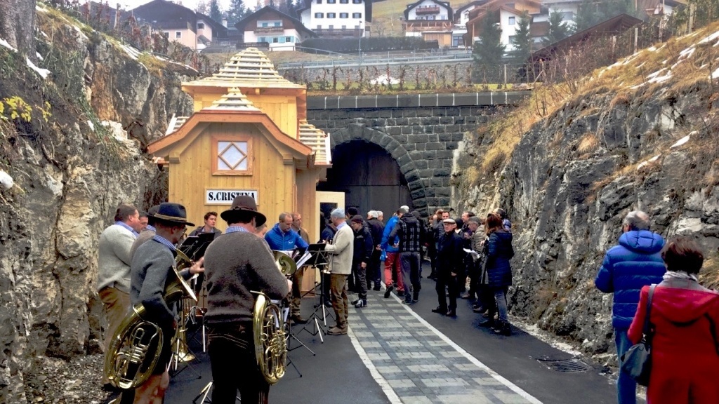Sabato 25 novembre è stata riaperta al pubblico pedonale la galleria della ex ferrovia della Val Gardena che si sviluppa nel centro di Santa Cristina, nei pressi della Parrocchiale, per circa 200 metri. Il manufatto era rimasto inutilizzato dal 1960, anno di chiusura della linea, realizzata nel 1916 per fini bellici e poi convertita all'uso civile, che collegava Chiusa alla località di Plan, ai piedi dei passi Gardena e Sella.