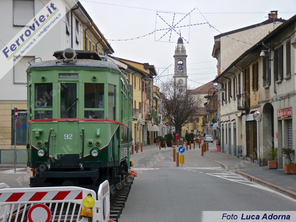 GORGONZOLA (Milano) - Rimarrà esposta fino al prossimo 27 dicembre davanti al Municipio di Gorgonzola la Reggio Emilia n.92. La storica elettromotrice dell'ATM, che fino agli anni '70 era una presenza abituale per le strade della cittadina milanese lungo la tranvia Milano - Vaprio poi soppressa, è stata restaurata e riportata nella livrea di origine biverde. Il trasporto è avvenuto con carrello stradale e quindi è avvenuto il posizionamento su uno spezzone di binari posato sulla superficie stradale.