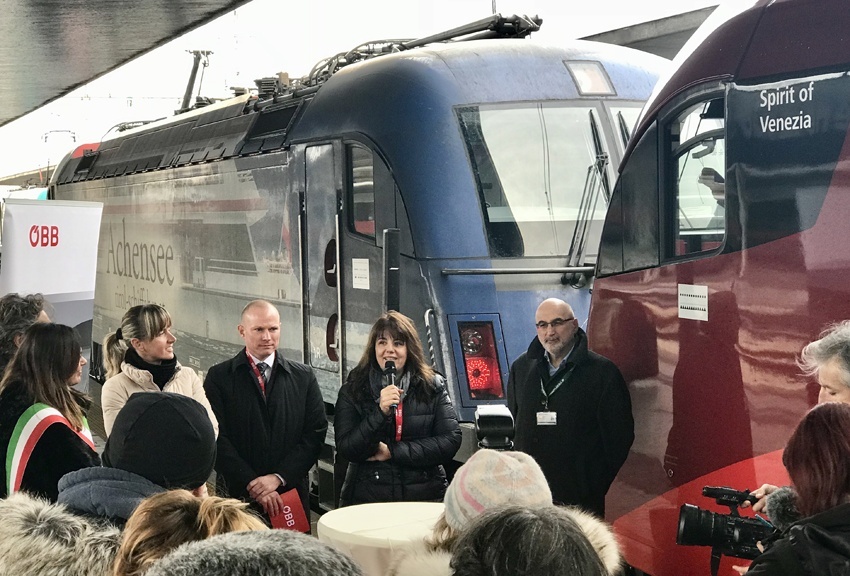 VENEZIA - Battesimo martedì 12 dicembre per le due nuove coppie di RailJet Venezia - Vienna delle ferrovie austriache ÖBB, entrate in servizio con il cambio d'orario del 10 dicembre. I RailJet 130/131 "San Marco" e 132/133 "Gondoliere" partono da Venezia Santa Lucia alle 9.55 e alle 15.55, con arrivo a Wien Hbf rispettivamente alle 17.35 e 23.35. In direzione opposta, partenza alle 6.25 e alle 12.25 dalla capitale austriaca, con arrivo nella città lagunare alle 14.05 e 20.05.