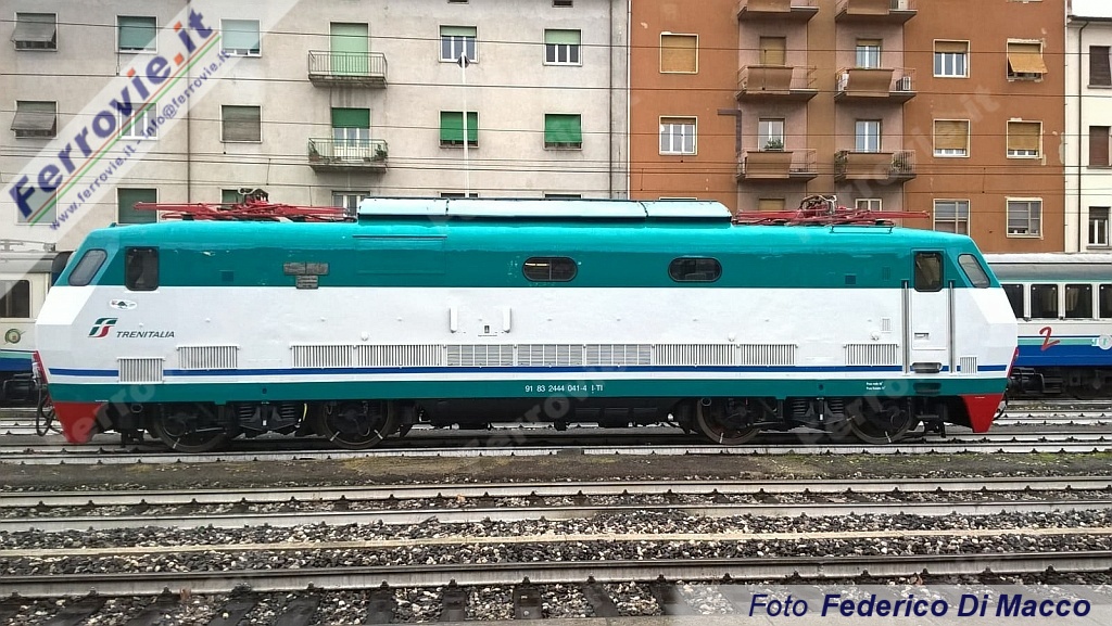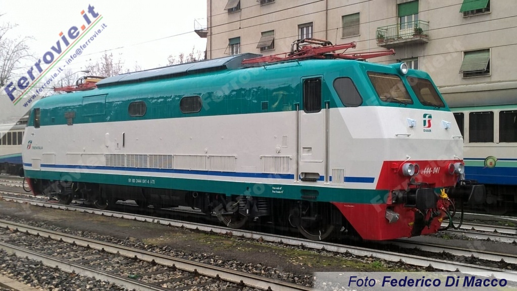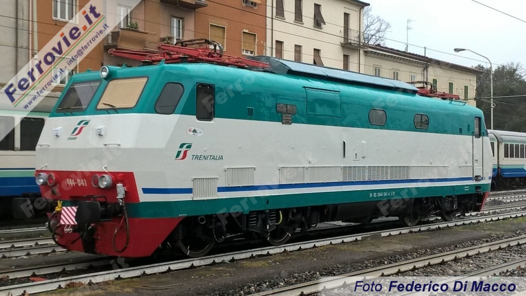 FOLIGNO (Perugia) - Venerdì 15 dicembre è uscita dalle Officine di Foligno l'ultima E.444 sottoposta a revisione ciclica. Si tratta della E.444.041 che sotto una pioggia battente ha effettuato una corsa prova isolata da Foligno ad Arezzo e ritorno in giornata, per essere riconsegnata nei prossimi giorni a Trenitalia e rientrare in servizio (vedi News ferroviarie del 22/11/2017).