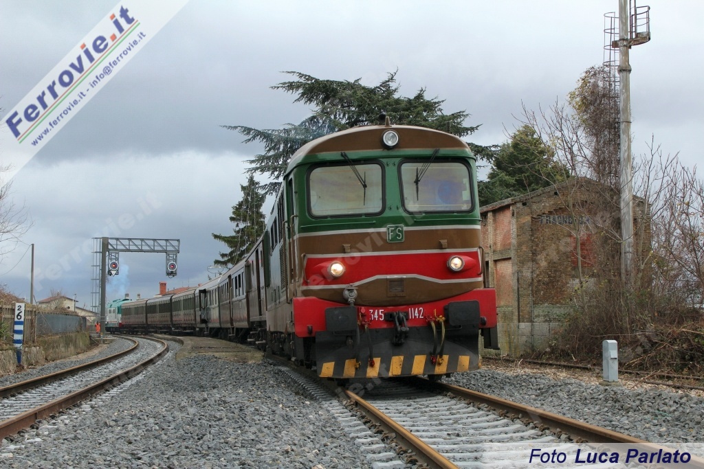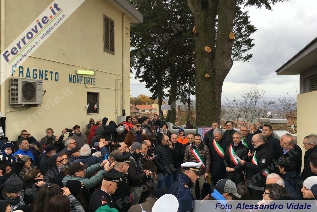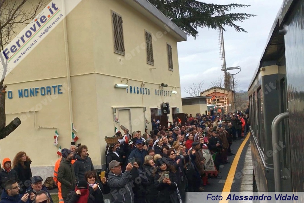 FRAGNETO MONFORTE (Benevento) - Esordio per il Treno Storico delle Mongolfiere da Napoli a Fragneto Monforte, comune beneventano rinomato per il volo delle mongolfiere. Sabato 16 dicembre infatti per la prima volta è stato possibile percorrere ulteriori 13 chilometri di linea recuperati da Rete Ferroviaria Italiana per scopi turistici. Il "Treno delle Mongolfiere", Treno Storico 96055, è partito in perfetto orario alle 9.30 ed ha effettuato fermata nelle stazioni di Aversa, Caserta, Benevento e Pietrelcina, dove chi ha voluto in alternativa è potuto scendere dal treno per visitare il borgo natale di San Pio grazie ad una navetta gratuita messa a disposizione dal Comune.