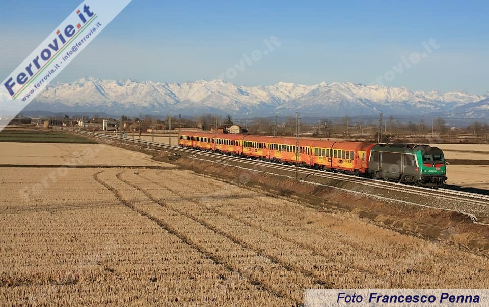 SANTHIA' (Vercelli) - Con la fine dell'anno si è consumato l'ultimo atto delle carrozze ex Arenaways, passate all'impresa ferroviaria Regiojet (vedi News ferroviarie del 06/10/2017). Venerdì 29 dicembre le sei carrozze gialle-arancio hanno lasciato Santhià alla volta di Tarvisio, con trazione mista a cura di Captrain fino a Novara ed a seguire fino al confine con una E 189 di InRail. Da qui il viaggio proseguirà alla volta della Romania, verso lo stabilimento AstraRail dove le carrozze sono attese per un intervento di adeguamento degli interni e quindi, al termine dei lavori, saranno consegnate al nuovo proprietario, che le impiegherà in Repubblica Ceca.