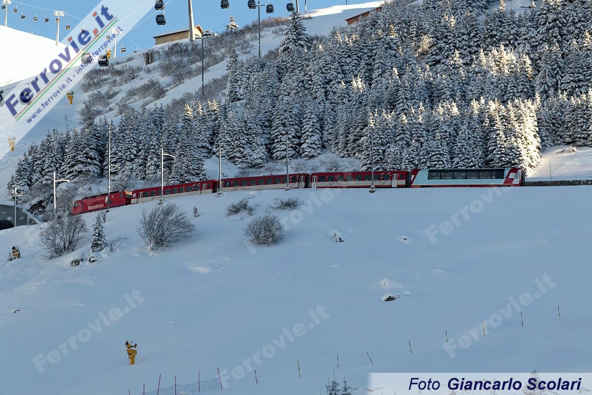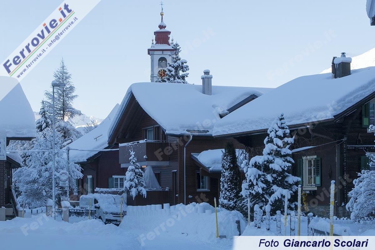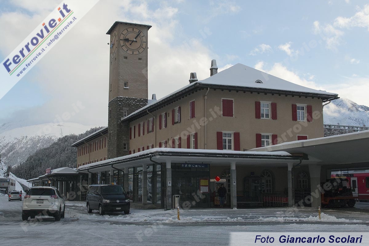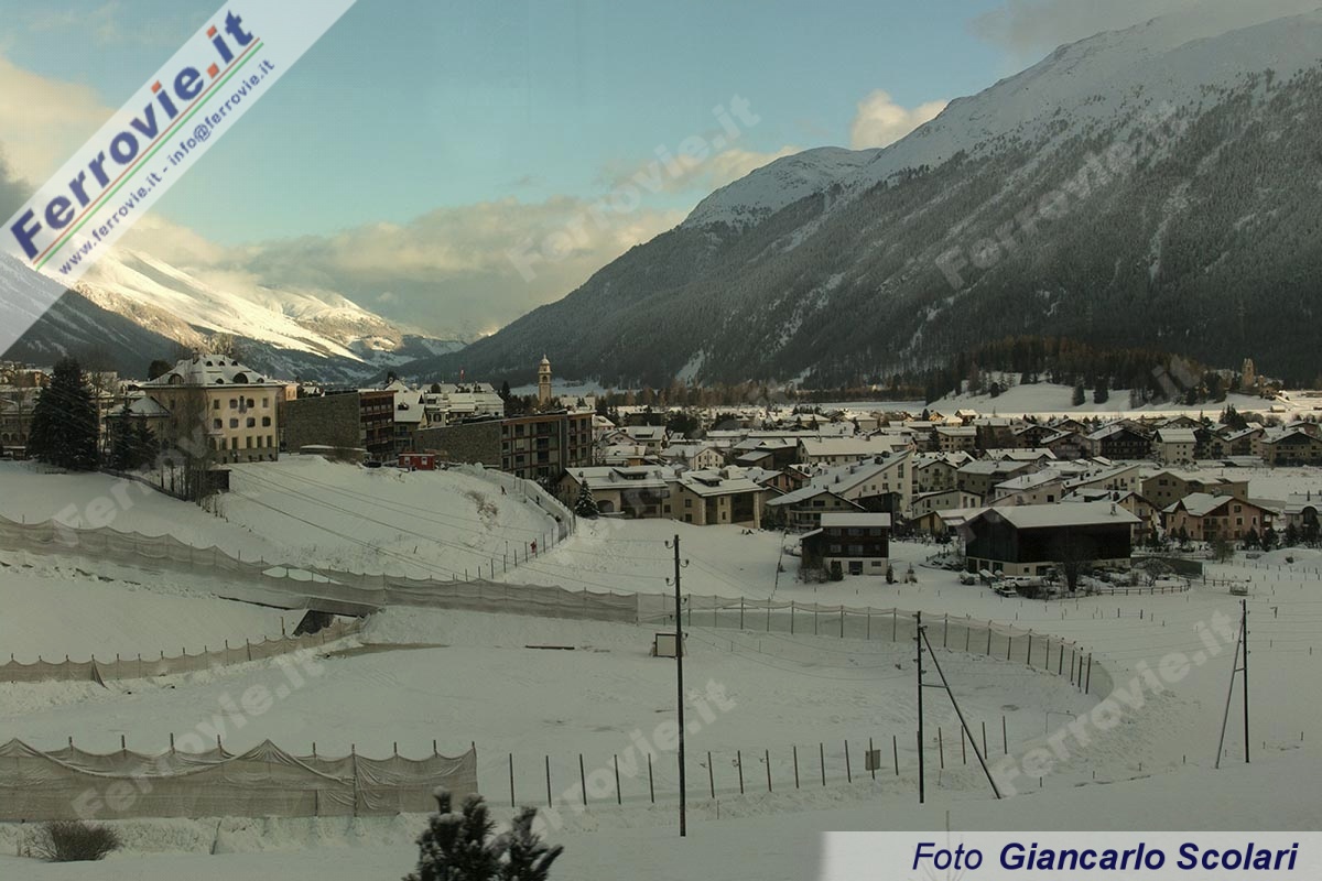 L'appuntamento è alle 9.00 alla stazione RhB di St. Moritz. Giungendo in bus da Pontresina possiamo apprezzare l'efficienza locale: nonostante le oltre 48 ore di nevicate intense terminate poche ore prima, le strade sono perfettamente percorribili. La giornata di sole ci permette di ammirare le montagne che ci circondano, tra cui il Piz Julier, alto 3.380 metri.