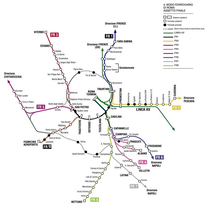 La successiva futura chiusura del nodo, entro l'orizzonte 2024 con lo scavalco del Fiume Tevere nei pressi di Tor di Quinto e l'allacciamento alla Roma - Firenze con opere d'arte già predisposte tra la stazione di Nomentana e lo scalo merci di Smistamento, risponde all'esigenza di garantire una maggior flessibilità del nodo di Roma sia per i servizi regionali che per quelli passanti merci e passeggeri (compresi i collegamenti AV per l'aeroporto di Fiumicino); in particolare la disponibilità di una linea di tipo orbitale permetterà un efficace potenziamento del trasporto pubblico locale nonchè l'ampliamento dell'offerta complessiva del trasporto ferroviario della capitale.
