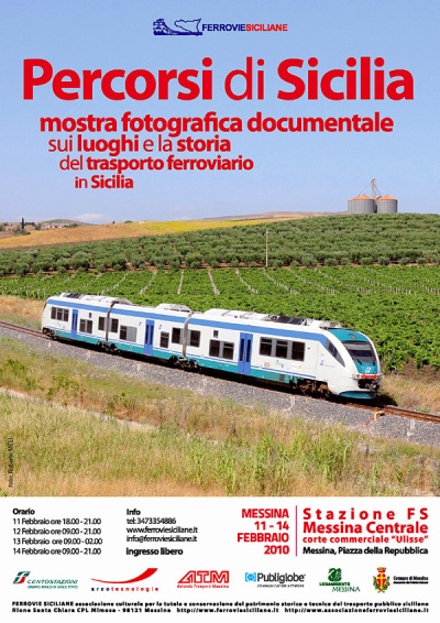 Giovedì 11 febbraio 2010 alle ore 18,00, sarà inaugurata presso la corte commerciale ''Ulisse'' della stazione di Messina Centrale la 4ª edizione della mostra ''Percorsi di Sicilia'' mostra fotografica documentale sui luoghi e la storia del trasporto ferroviario in Sicilia.