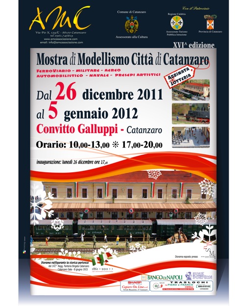 Catanzaro - Con il patrocinio della Regione Calabria, della Provincia e del Comune di Catanzaro, alle ore 17:00 del 26 dicembre verrà inaugurata la consueta mostra di modellismo organizzata dalla Associazione Modellisti Catanzaro - AMC.
