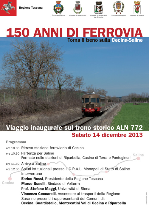 Con l'entrata in vigore dell'orario ferroviario 2014, torna il treno sulla Cecina - Volterra. L'evento verrà festeggiato con un treno speciale il 14 dicembre, effettuato con ALn 772.