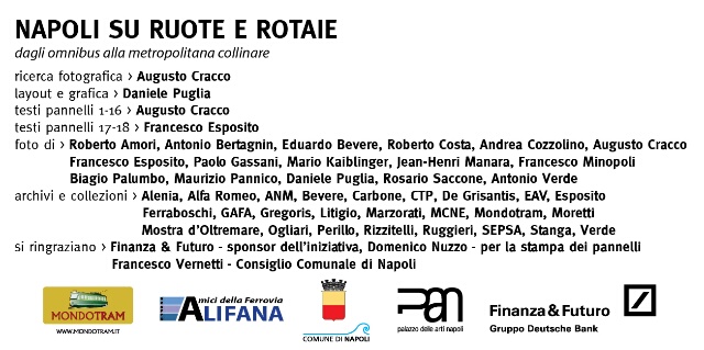 Voluta dalla comunità virtuale legata al sito Mondotram.it con la sponsorizzazione di Finanza e Futuro ed il patrocinio del Comune la mostra si articola su 18 pannelli tematici ed oltre una ventina di gigantografie che, partendo dagli albori, quando la trazione dei mezzi era affidata ai cavalli, descrivono i fatti salienti dello sviluppo del trasporto pubblico fino alle ultimissime realizzazioni legate alla Linea 1 della Metropolitana.