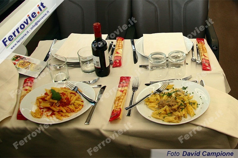 A quasi tre anni dalla scomparsa (vedi News ferroviarie del 18/04/2015), da metà febbraio la pasta espressa è tornata a bordo degli ETR.500 Frecciarossa di Trenitalia.