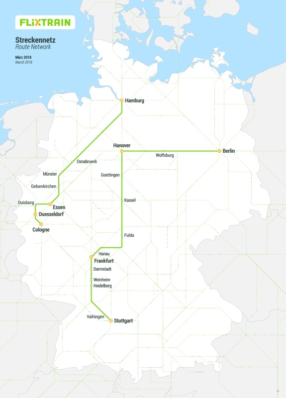 Il programma di FlixTrain prevede già entro il 2018 l'espansione con 28 nuove destinazioni in Germania che saranno raggiunte dalla nuova impresa ferroviaria.