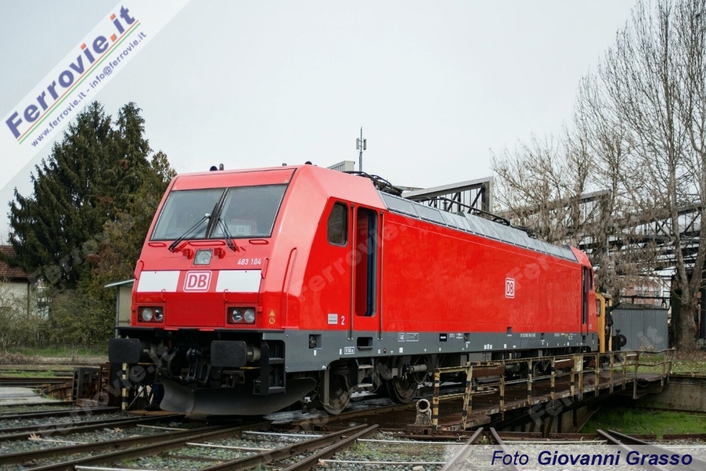 ASTI - Nuovo look per le locomotive di DB Cargo. Nella prima mattinata del 21 marzo, dalla rimessa dell'ex Deposito Locomotive di Asti (oggi officine Tiber.co) ha fatto capolino la E 483.104, prima unità del gruppo a ricevere la nuova coloritura interamente rossa ottenuta con verniciatura e pellicolatura. La nuova livrea va a sostituire il grigio - blu precedentemente in uso su queste macchine, uniformando quindi anche le TRAXX di DB Cargo alle E 191 Vectron, nonché ai colori aziendali della capogruppo Deutsche Bahn.