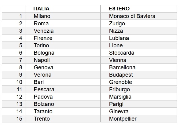All'estero: Monaco di Baviera e Zurigo in testa alla classifica, ma è la Francia il Paese più gettonato