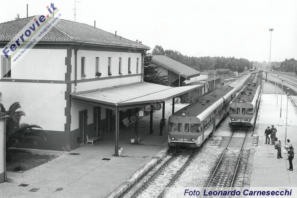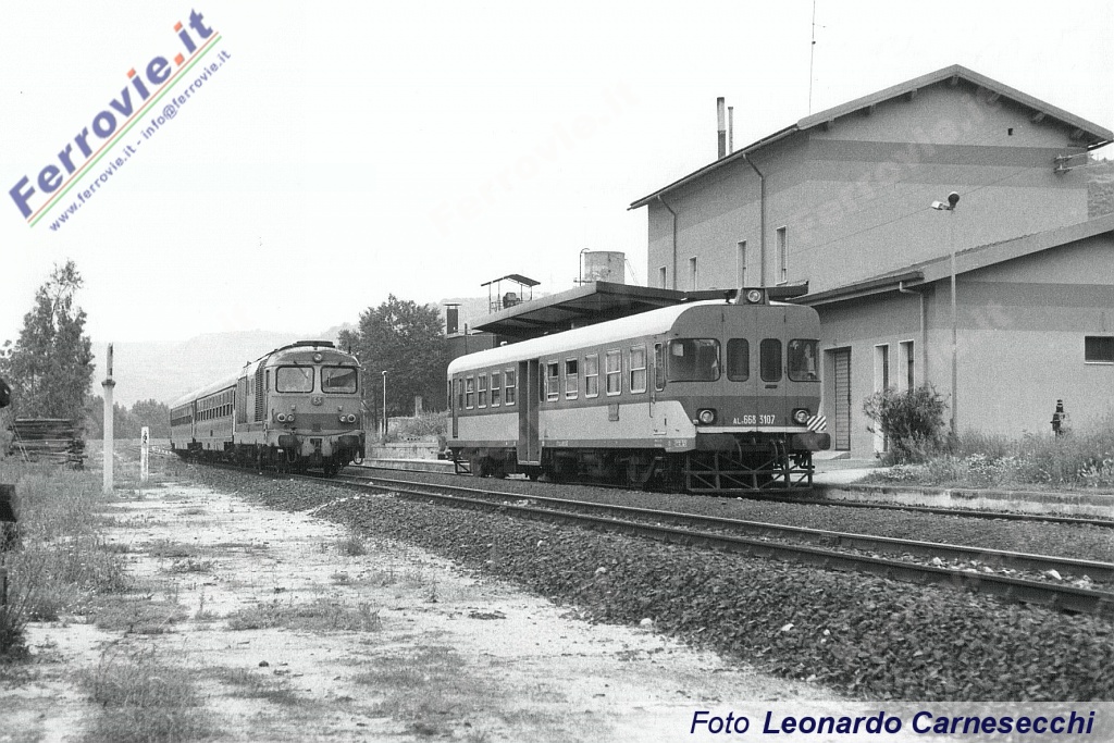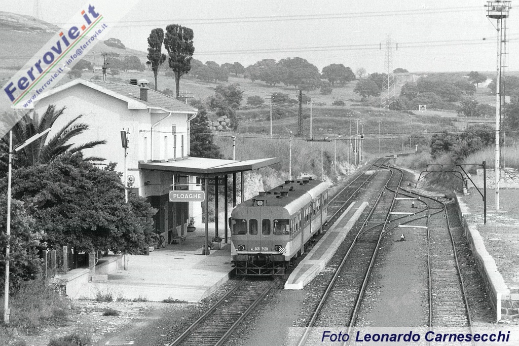 4. Locale Sassari - Chilivani composto dalla doppia di ALn 668.3107 e 3120 nella stazione di Ploaghe. (Foto Leonardo Carnesecchi, 24 maggio 1992)