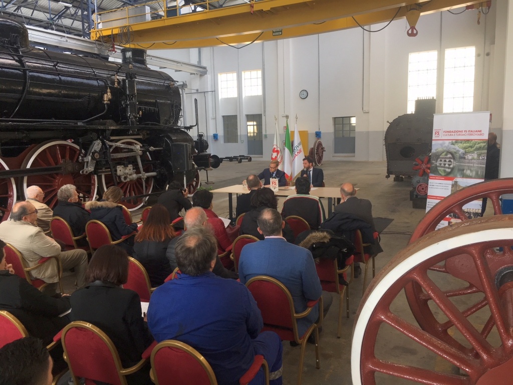 PISTOIA - Presentazione a Pistoia per la due giorni di eventi che avranno come protagonisti il restaurato DRS di Pistoia e la linea ferroviaria Porrettana. Alla conferenza stampa che si è tenuta questa mattina nei locali dell'ex "Capannone TE" del Deposito Rotabili Storici di Pistoia, sono intervenuti Luigi Cantamessa Direttore Generale di Fondazione FS Italiane e Alessandro Tomasi, Sindaco di Pistoia, che tra l'altro hanno parlato del riqualificato sito ferroviario e dell'ormai consolidato binomio tra la città di Pistoia e Fondazione FS.