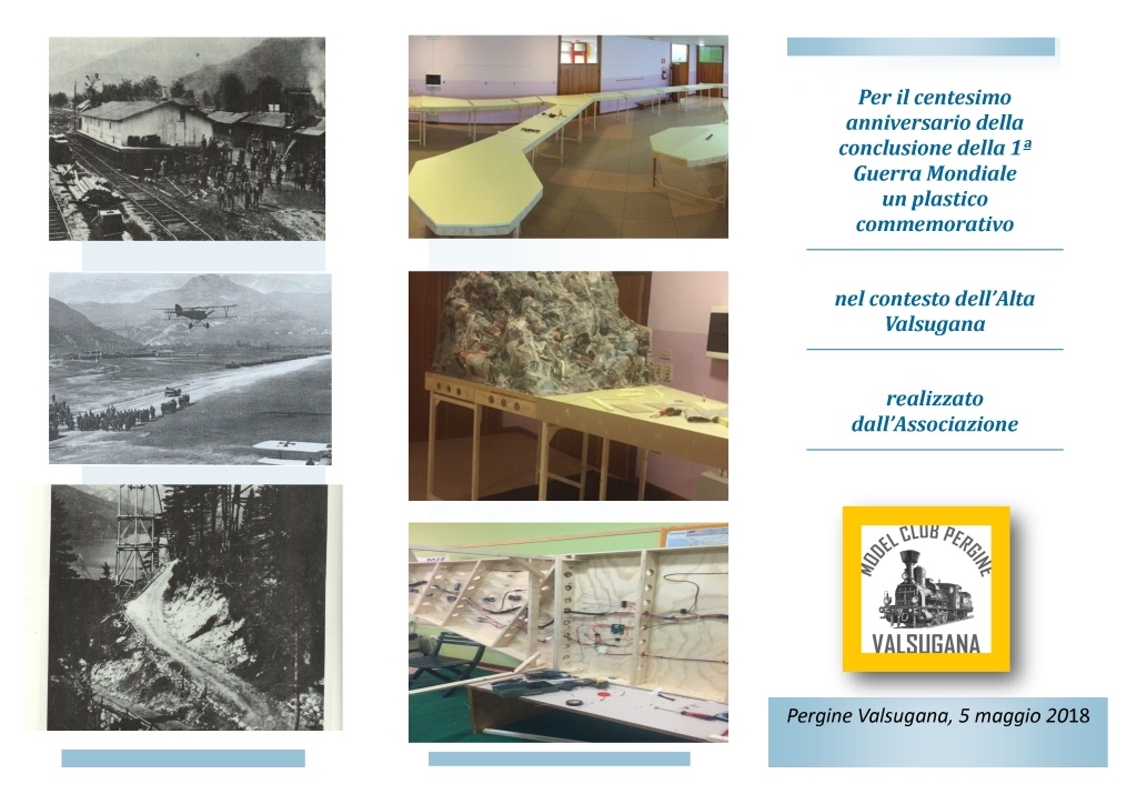 il plastico ferroviario sociale. L'impianto riproduce la ferrovia della Valsugana nel contesto del 1° conflitto mondiale nell'Alta Valsugana per la ricorrenza del centenario della conclusione di tale conflitto.