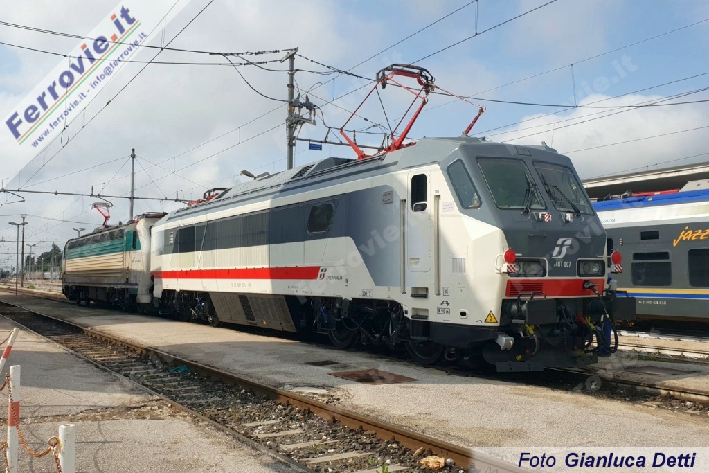 FOLIGNO (Perugia) - Cresce il numero di locomotive monocabina per treni Intercity E.401, derivate dalla trasformazione delle E.402. Mercoledì 9 maggio è uscita dalle Officine di Foligno la E.401.007 (ex E.402.007) al termine dell'intervento di riqualificazione che comporta l'asportazione di una cabina di guida sostituita da intercomunicante con tubolare, preceduta a metà aprile dalla E.401.037. Sale così a 10, su 40 unità complessive del gruppo E.402.006-045, il numero di E.401 restituite all'esercizio, consentendo un ampliamento del numero di servizi Intercity reversibili affidati a queste macchine, con carrozze pilota Z1 A.