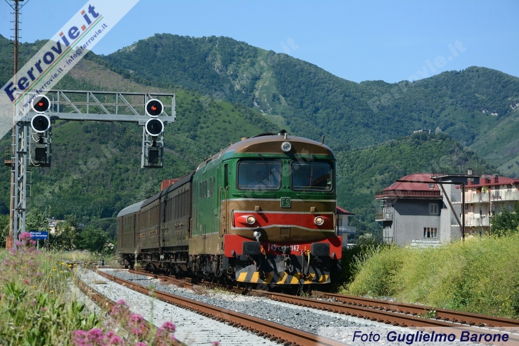 SALERNO - Grande emozione intorno all'affascinante treno storico "Sannio Express" da Salerno a Pontelandolfo e ritorno, effettuato domenica 20 maggio 2018. Per la prima volta una locomotiva Diesel D.345 di Fondazione FS ha percorso la linea Salerno - Mercato San Severino - Avellino - Benevento al traino di un convoglio composto da due carrozze "Centoporte" e un bagagliaio, proseguendo poi sulla tratta Fragneto Monforte - Pontelandolfo riaperta il 6 maggio.