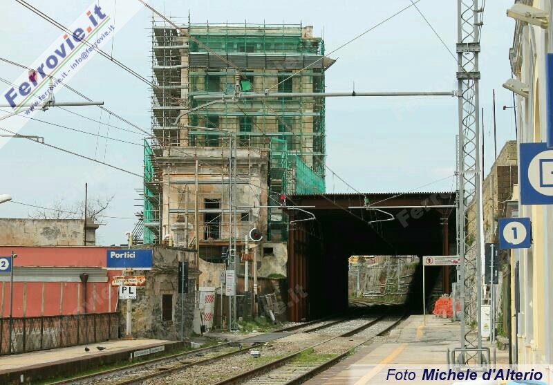 La riapertura della linea nei tempi annunciati, è stata resa possibile solo grazie alla realizzazione di un tunnel provvisorio di 108 metri che consentirà ai treni di tornare a viaggiare, in sicurezza, al riparo da eventuali possibili cedimenti dell'edificio fatiscente, posto al lato dei binari.