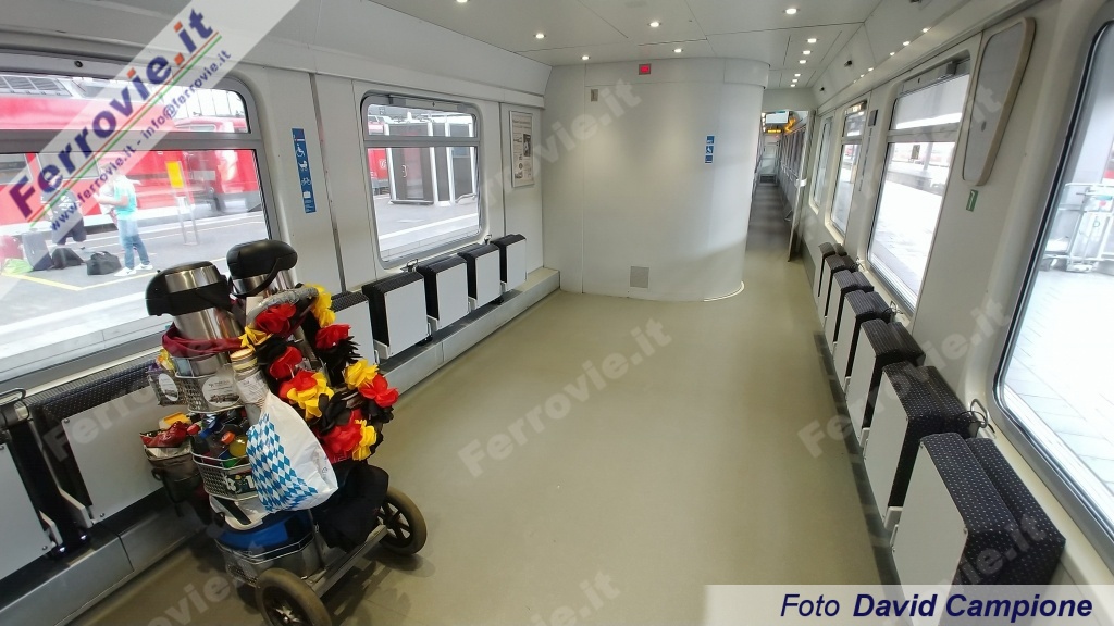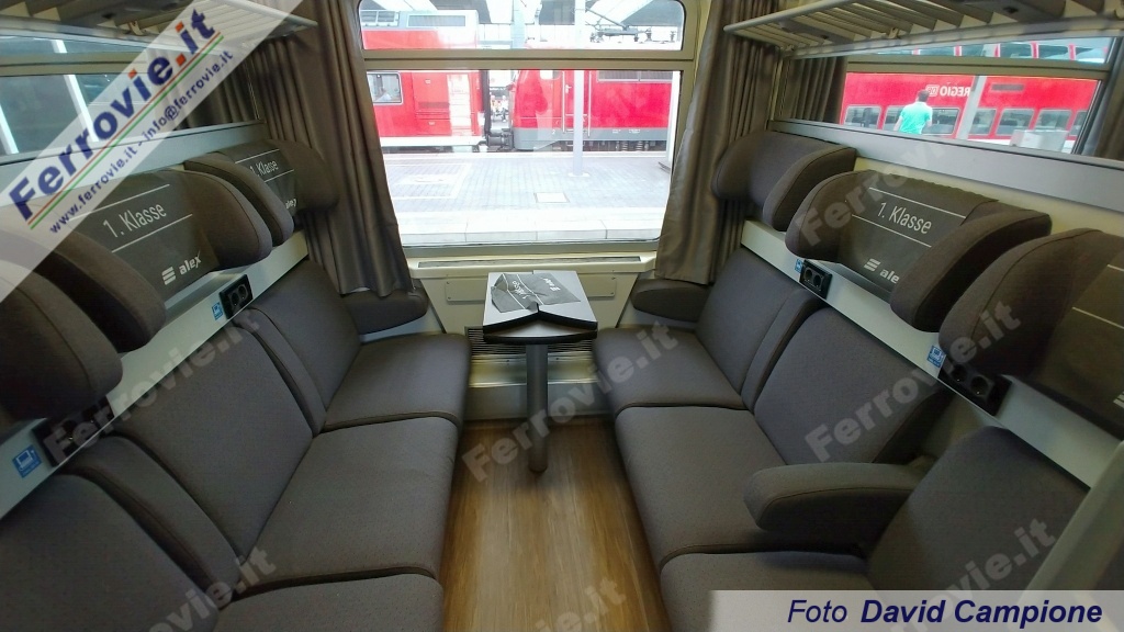 Dei 5 scompartimenti rimanenti, 4 sono diventati di prima classe con tavolini fissi lato finestrino e rivestimento del pavimento con laminato simile parquet, mentre uno è di seconda classe per famiglie e bambini. Tutti i posti a sedere dispongono di prese di corrente.