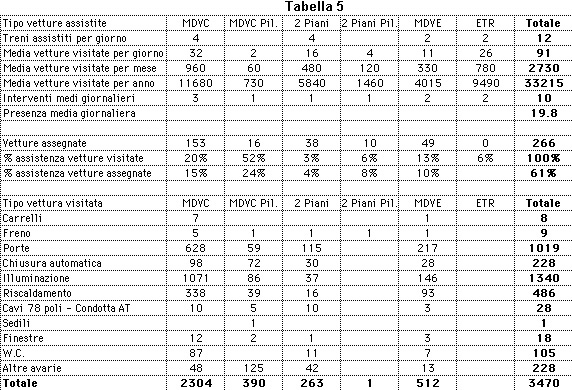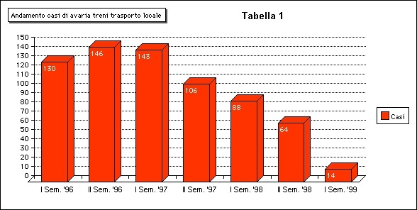 Gli ultimi dati pervenuti, relativi al primo semestre del 1999 confermano la validità di questa iniziativa e, anche in vista dell'imminente entrata in servizio di nuovo materiale rotabile, che come è noto agli inizi soffre di "malattie d'infanzia", speriamo che sia la chiave per aprire la porta ad una nuova concezione di manutenzione.