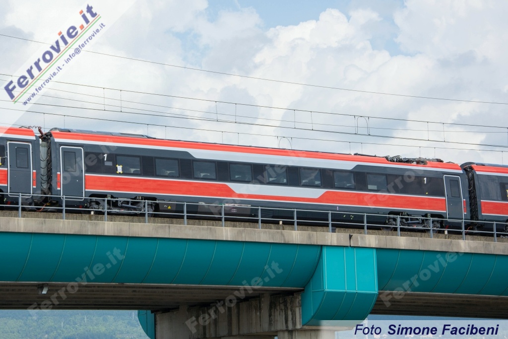 PISTOIA - Prima uscita per il "nuovo" ETR.700 di Trenitalia nella livrea definitiva. Giovedì 30 agosto il treno n.13 ha lasciato lo stabilimento Hitachi Rail Italy di Pistoia diretto ad Osmannoro, dove verranno effettuate le prime misurazioni nel sito Italcertifer di Firenze. Come anticipato su Ferrovie.it (vedi News ferroviarie del 04/06/2018) l'ETR.700 si presenta in rosso e argento con fascia dei finestrini nera, che ne identificano l'uso per servizi Frecciarossa.