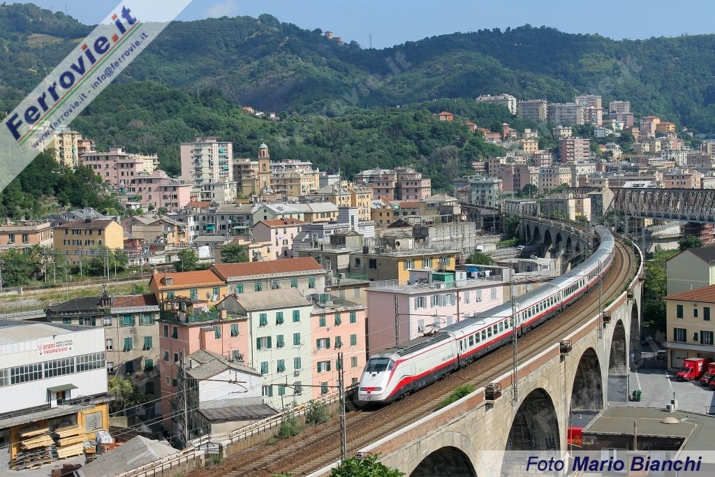 VENTIMIGLIA (Imperia) - Mercoledì 19 e giovedì 20 settembre una composizione Frecciabianca, con due locomotive E.414 inquadranti 9 carrozze, ha compiuto una serie di prove sul percorso Savona - Taggia - Ventimiglia. I test, necessari per verificare il comportamento degli apparati elettronici delle E.414 sotto la tensione di 1,5 kV in corrente continua con cui è alimentata la stazione di confine ligure, preannunciano la pressoché certa introduzione di relazioni Frecciabianca da Ventimiglia per Roma e Milano e viceversa, che dal cambio orario del prossimo dicembre dovrebbero sostituire due coppie di Intercity già presenti in orario.