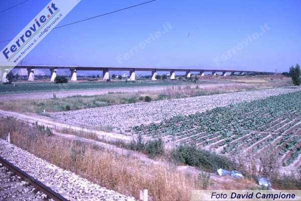 3. I lavori proseguono anche sul versante campano della linea ad Alta Velocità. Il lungo viadotto della fotografia, ripreso da un treno in marcia sulla linea ferrovia Aversa - Caserta, si trova tra Gricignano e Marcianise. (Foto David Campione, 5 giugno 1999)
