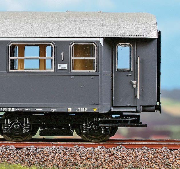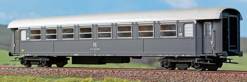 | Descrizione: | Carrozza di 1a classe Tipo 1955R (Az 20.500) in livrea grigio ardesia con finestrini Klein e carrelli 24 |
