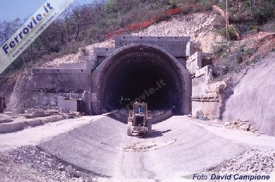 2. Imbocco lato sud della galleria Sgurgola. Alla data in cui è stata scattata la foto, era stato quasi ultimato l'arco rovescio della galleria. (Foto David Campione, 08 aprile 1997)