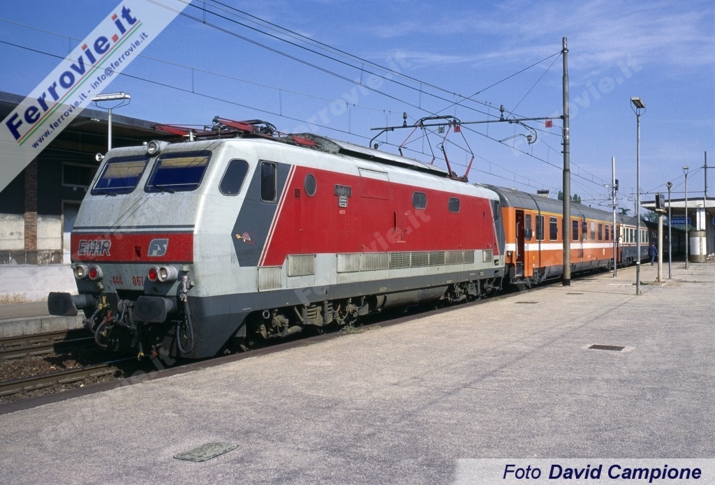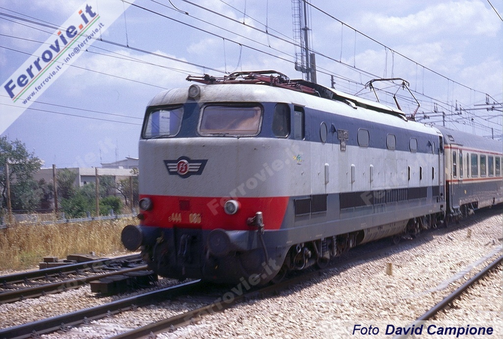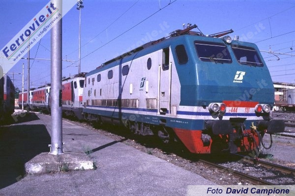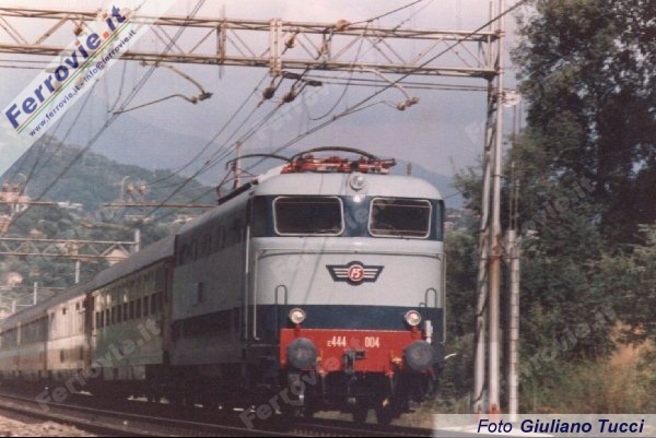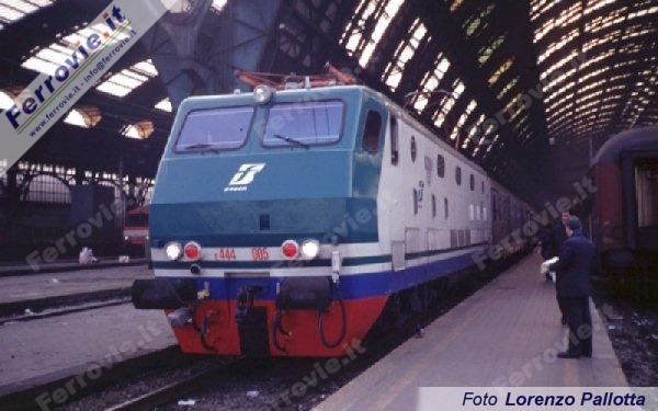 L'E.444R.005 è stata la prima unità che ha ricevuto in sede di riqualificazione i nuovi colori FS; le fasce blu e verde alla base della cassa risultavano invertite.