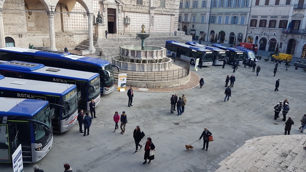 La flotta rinnovata è stata presentata oggi in Piazza IV Novembre a Perugia alla Presidente della Regione Catiuscia Marini, all'Assessore Regionale alla Mobilità Giuseppe Chianella, al Sindaco di Perugia Andrea Romizi, all'Assessore alla Mobilità del Comune di Perugia Cristiana Casaioli e alle altre Amministrazioni comunali umbre dal Direttore Regionale Umbria di Busitalia Velio Del Bolgia.