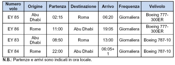 Orario voli: Abu Dhabi - Roma operati con velivoli Boeing 787-10 / 777-300ER a partire dal 1 giugno 2019
